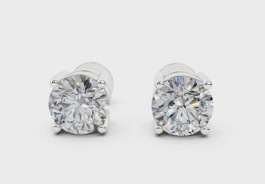 18k Gold Four Prong Brilliant Cut Lab Grown Round Diamond Stud Earrings