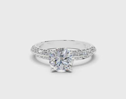 18K Gold 1 Carat Half Pavé Crown Diamond Engagement Ring