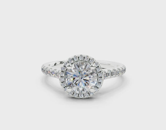 18K Gold Half Pavé Halo Diamond Engagement Ring 1 Carat