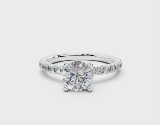 18K Gold Comfort Half Pavé Diamond Engagement Ring 1 Carat