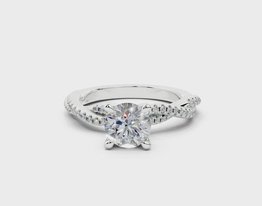 18K Gold Half Pavé Twisted Diamond Engagement Ring 1 Carat