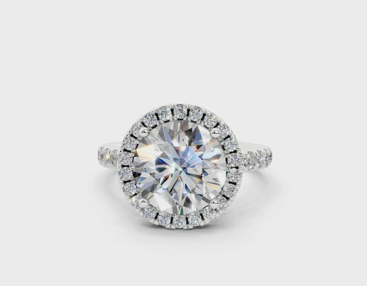 18K Gold Half Pavé Halo Diamond Engagement Ring 3 Carat