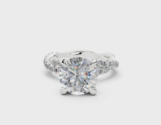 18K Gold Half Pavé Twisted Diamond Engagement Ring 3 Carat