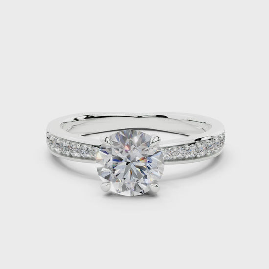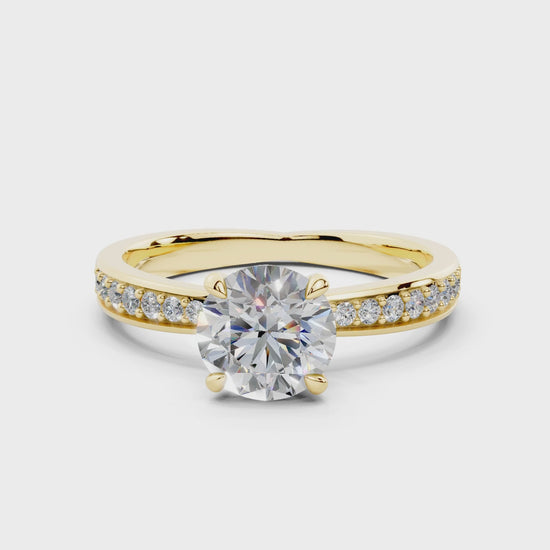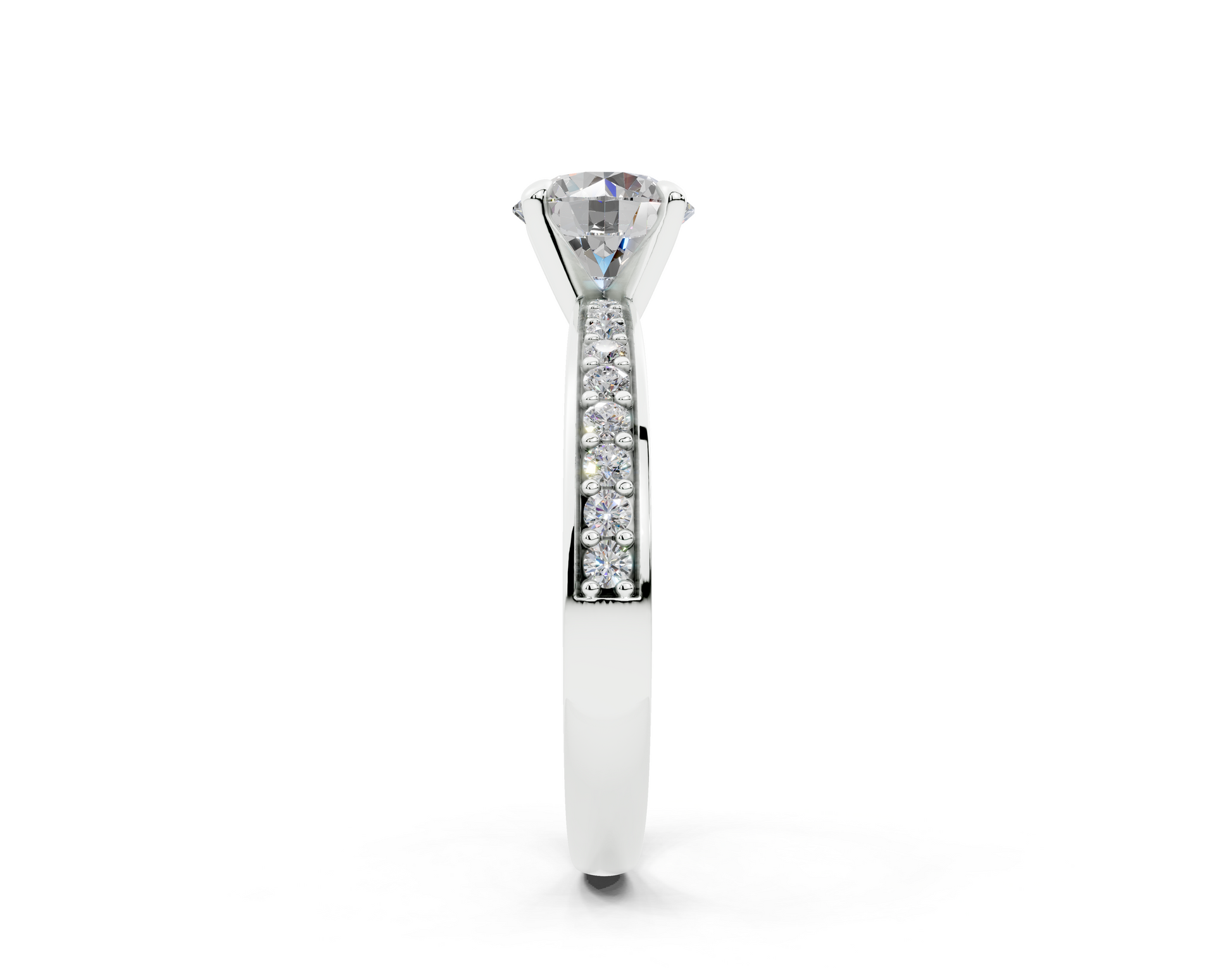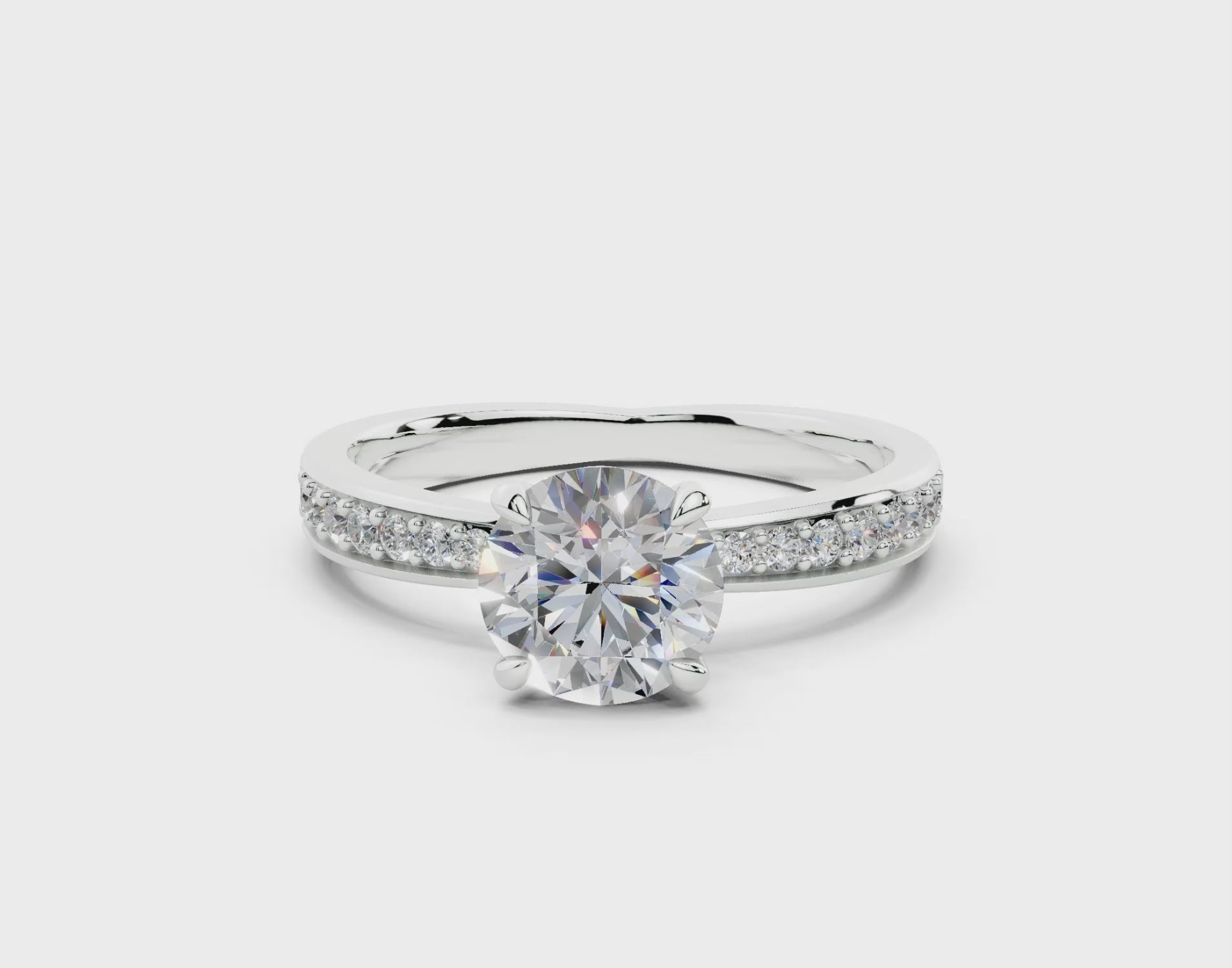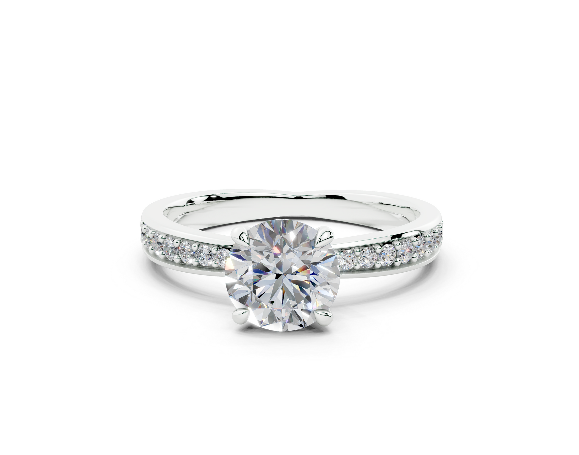 A symbol of elegance and enduring love, the Diamond Engagement Ring features a stunning 1-carat center diamond that dazzles from every angle. The half Pavé design, with its tapered band, offers a sleek and sophisticated look, enhancing the diamond’s brilliance. Crafted for both beauty and comfort, this ring is as practical as it is exquisite, ensuring a secure fit for everyday wear while offering an unforgettable shine. Quality craftsmanship makes this an heirloom-worthy piece to cherish forever.