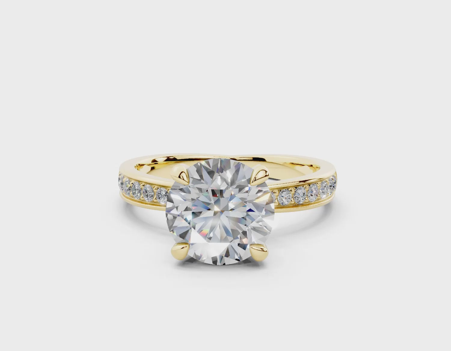 A symbol of elegance and enduring love, the Diamond Engagement Ring features a stunning 1-carat center diamond that dazzles from every angle. The half Pavé design, with its tapered band, offers a sleek and sophisticated look, enhancing the diamond’s brilliance. Crafted for both beauty and comfort, this ring is as practical as it is exquisite, ensuring a secure fit for everyday wear while offering an unforgettable shine. Quality craftsmanship makes this an heirloom-worthy piece to cherish forever.