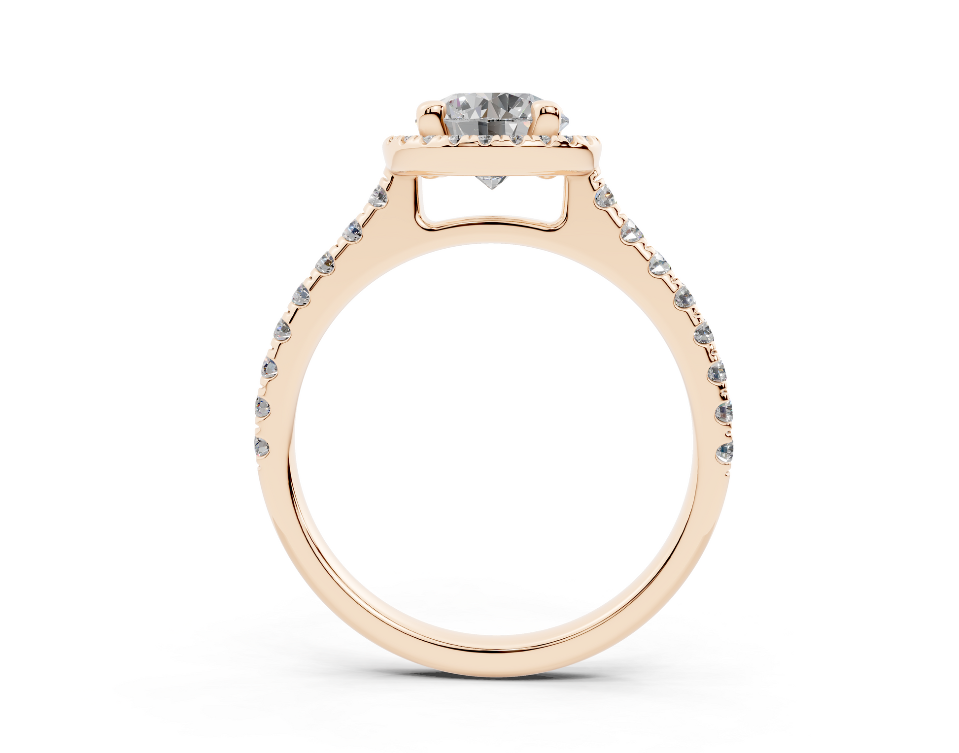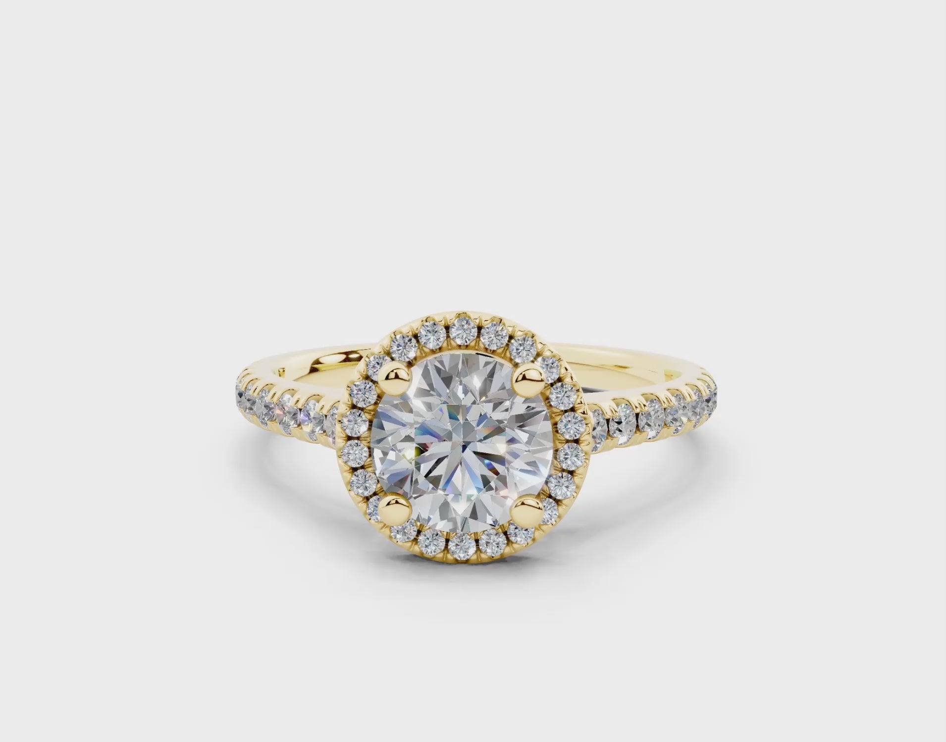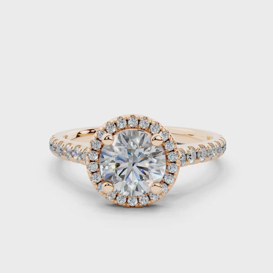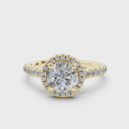 18K Gold Half Pavé Halo and Shank Diamond Engagement Ring 1 Carat