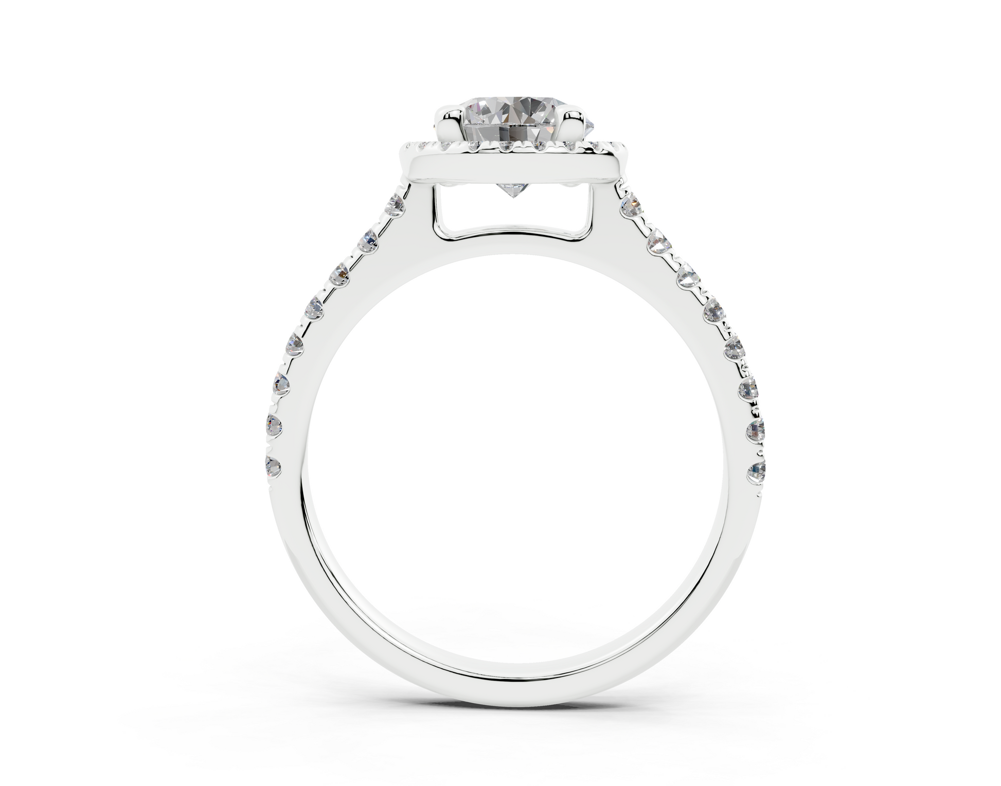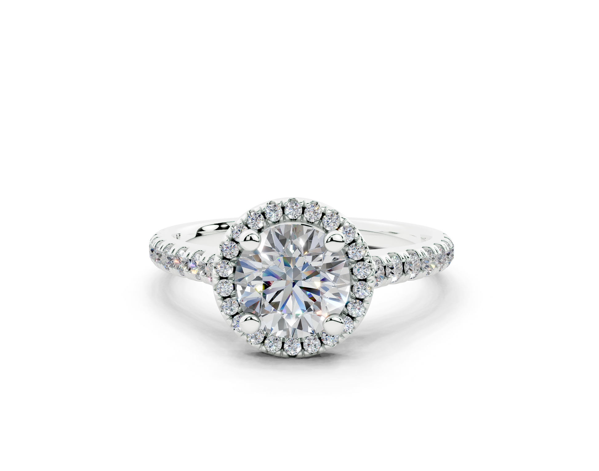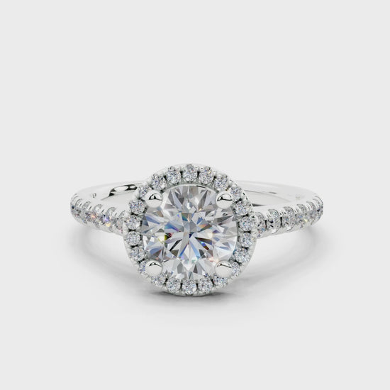 Let her brilliance match yours with the Diamond Engagement Ring. The half pavé-set diamonds on the halo and shank highlight the round-cut center diamond, elevating its sparkle. Designed to capture attention, this ring offers both a luxurious look and exceptional durability, ensuring it lasts for a lifetime. Every detail, from the pavé setting to the quality craftsmanship, is made to celebrate your love most dazzlingly.