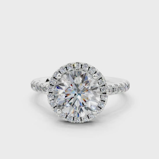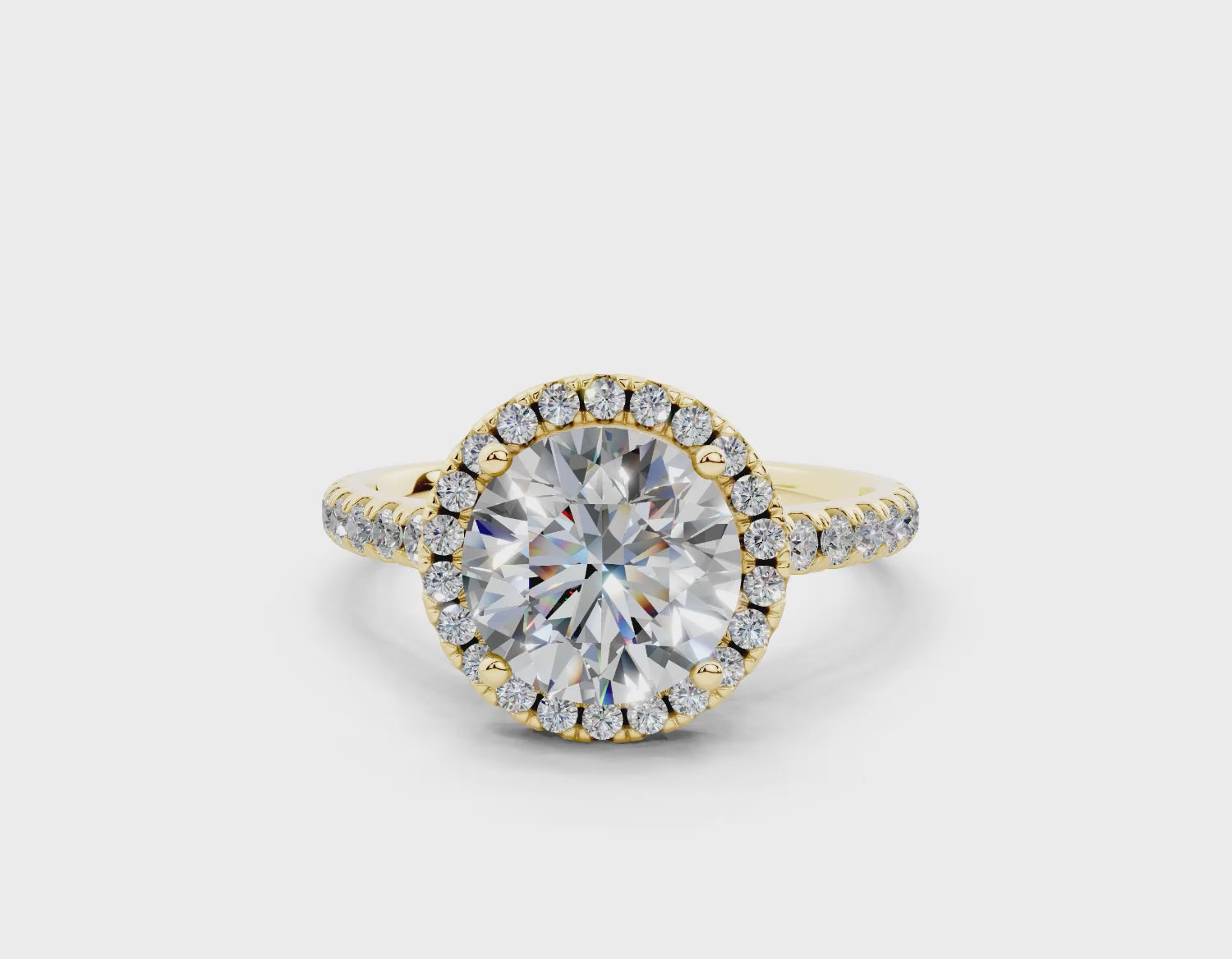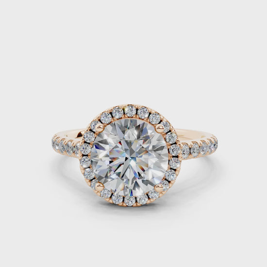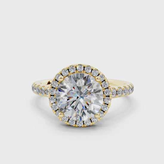18K Gold Half Pavé Halo and Shank Diamond Engagement Ring 2 Carat