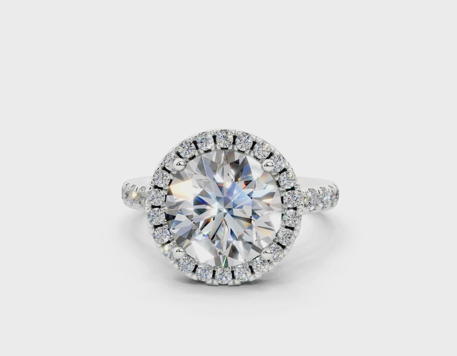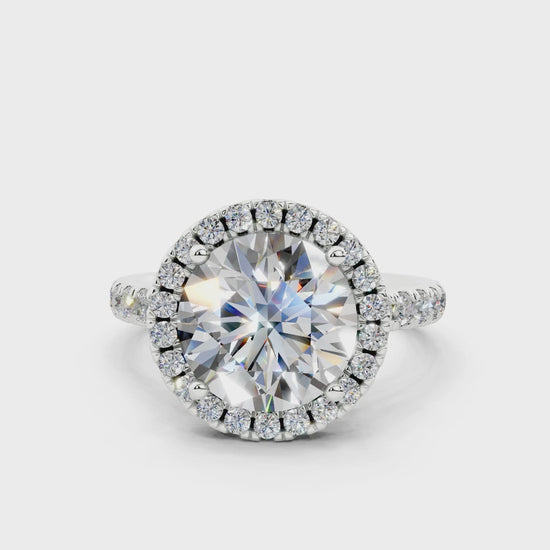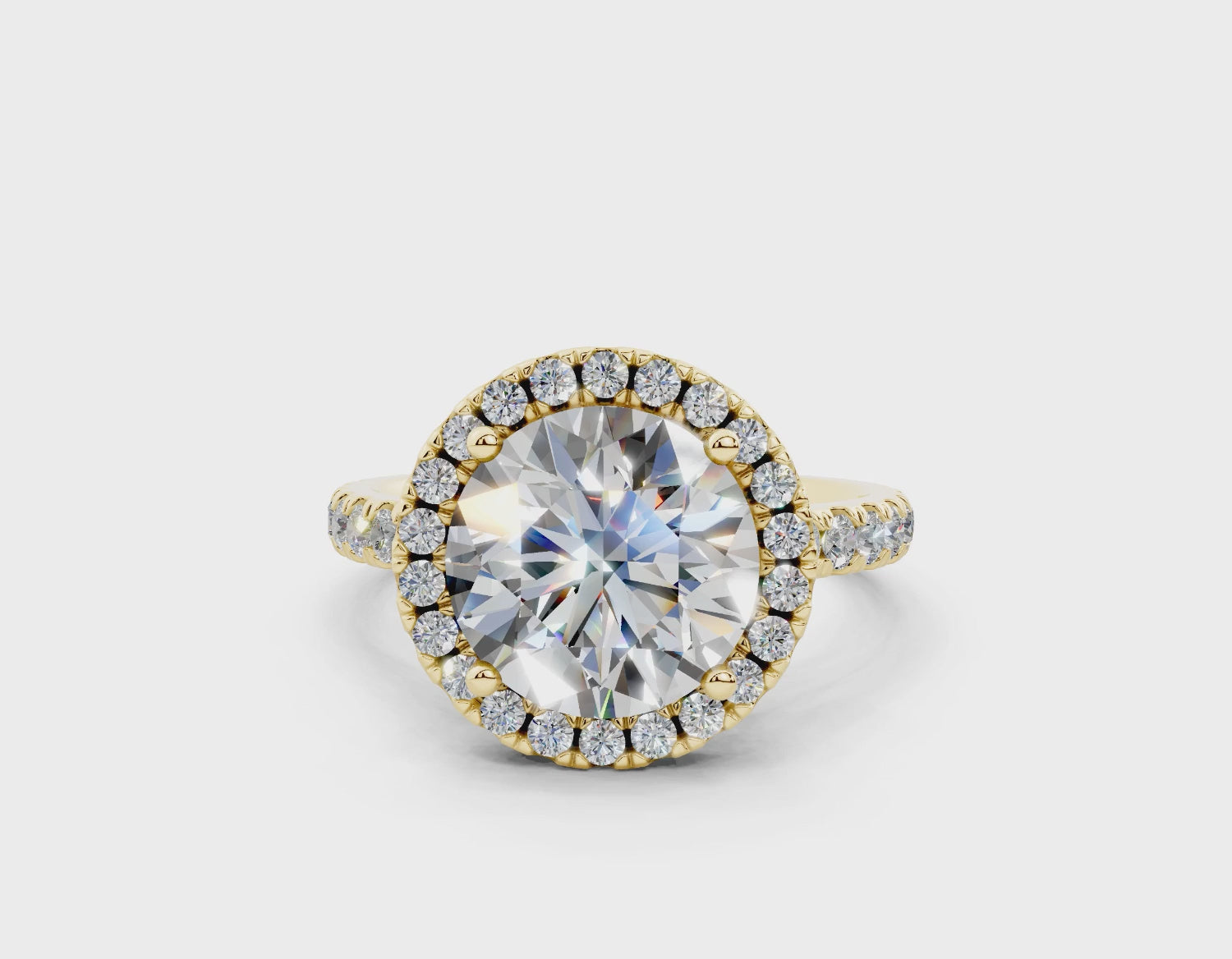 18K Gold Half Pavé Halo and Shank Diamond Engagement Ring 3 Carat