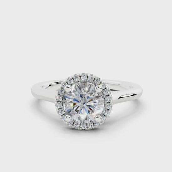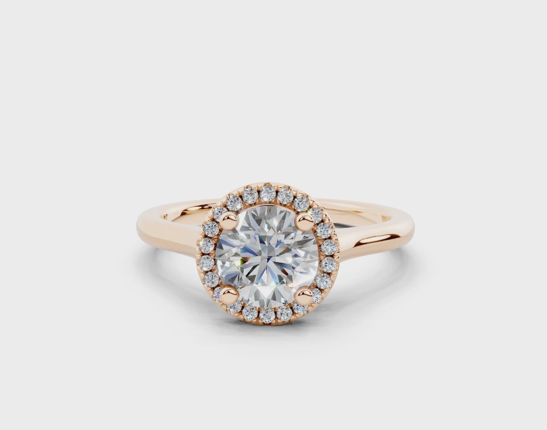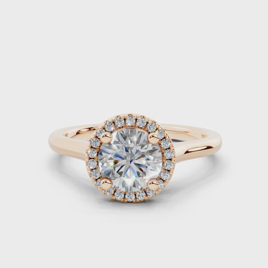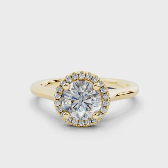 18K Gold Half Pavé Halo Diamond Engagement Ring 1 Carat