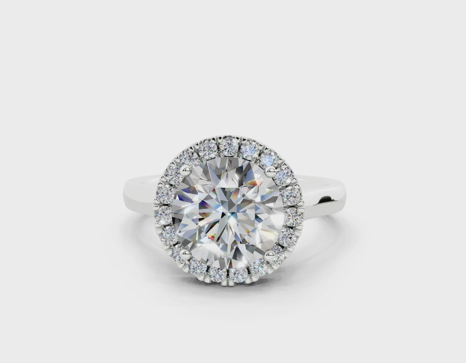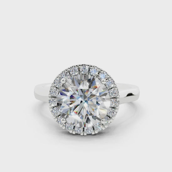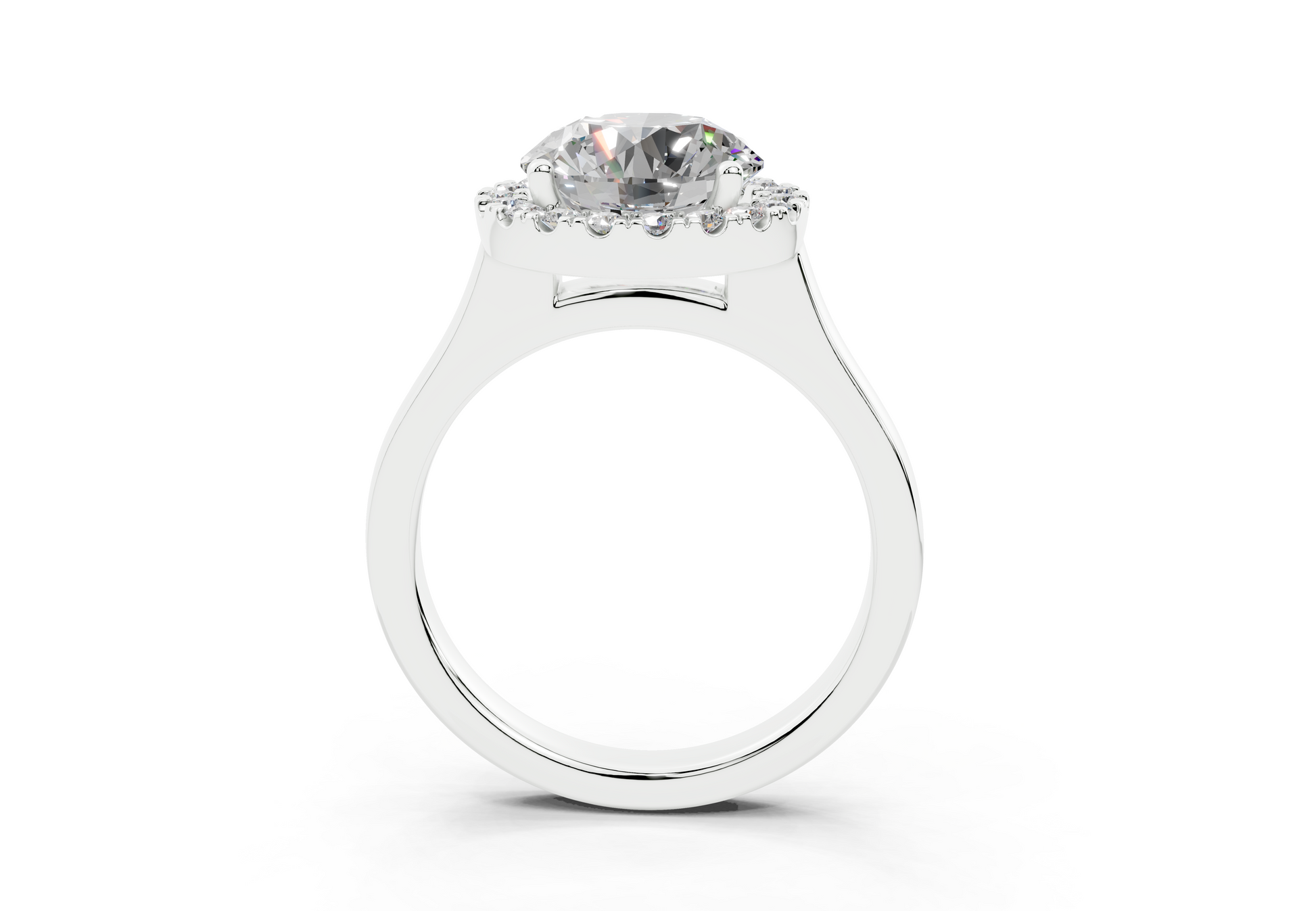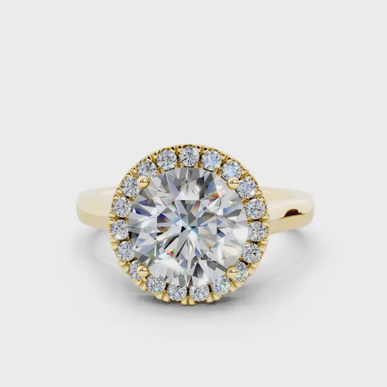 18K Gold Half Pavé Halo Diamond Engagement Ring 2.5 Carat