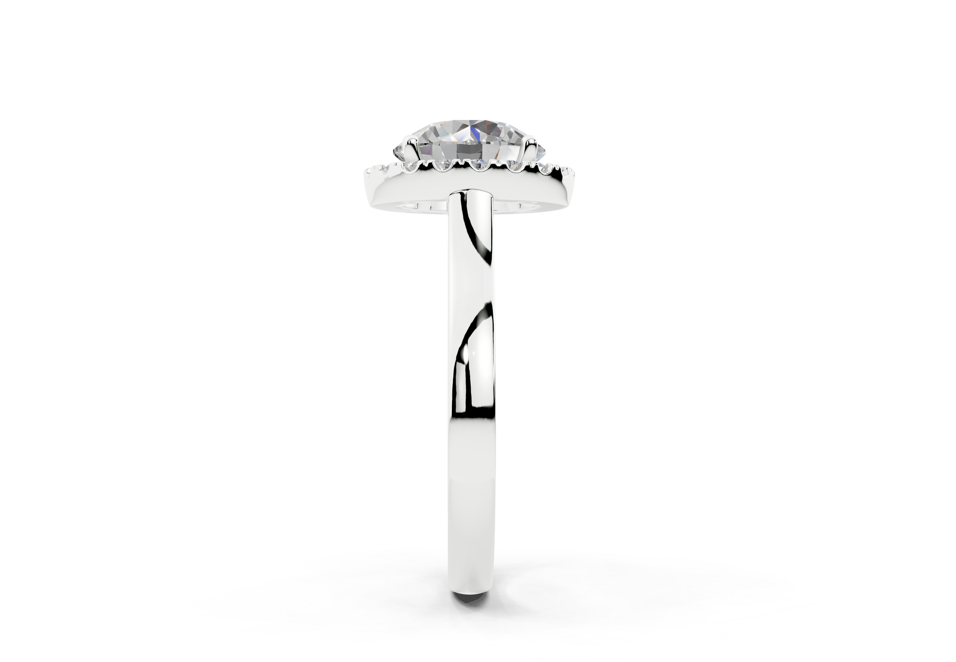 Shine brighter with the Diamond Engagement Ring. The 1-carat round brilliant-cut diamond takes center stage, encircled by a sparkling half Pavé halo that enhances its radiant beauty. The delicate 18K gold band seamlessly complements the diamonds, creating a luxurious and timeless design. Carefully crafted for lasting elegance, this ring offers a perfect blend of sophistication and brilliance, ensuring it becomes a cherished symbol of your love and commitment for years.
