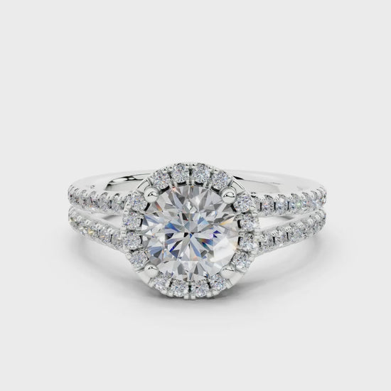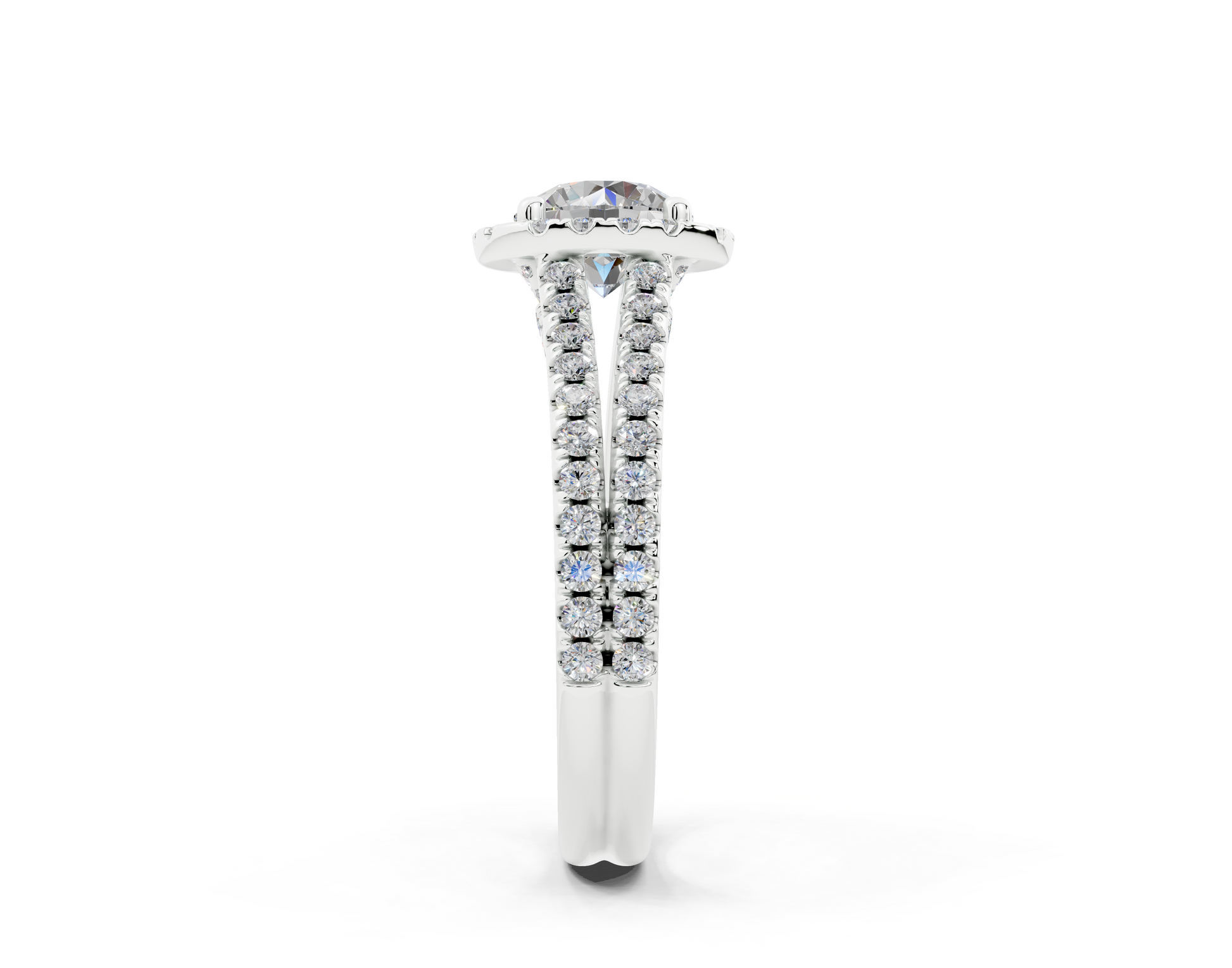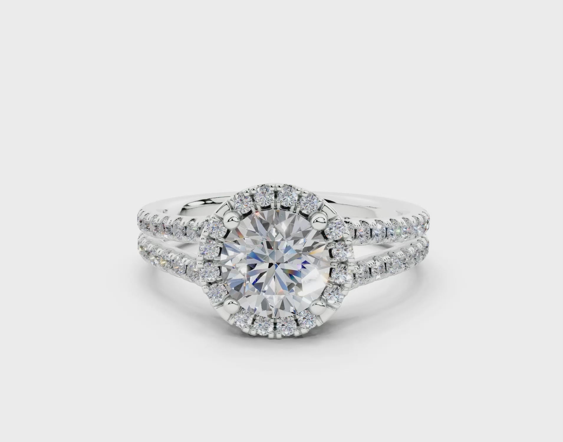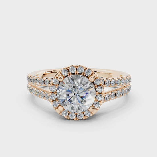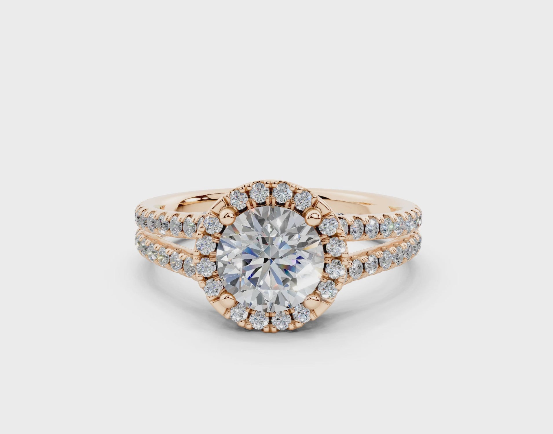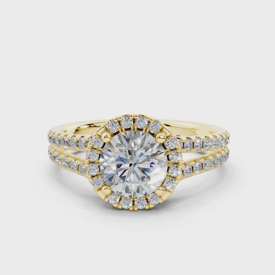 18K Gold Half Pavé Round Split Band Halo Diamond Engagement Ring 1 Carat