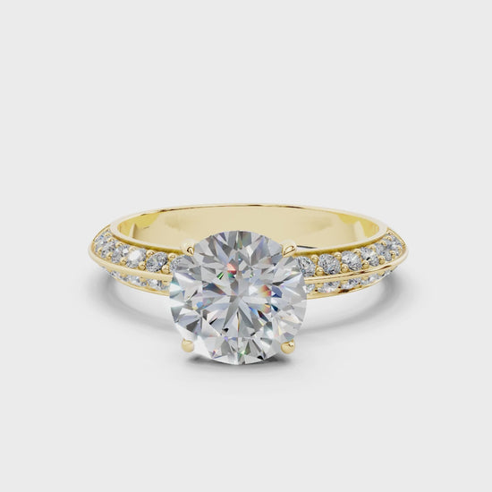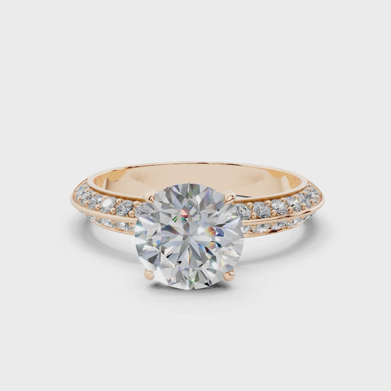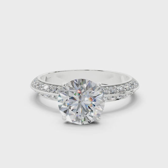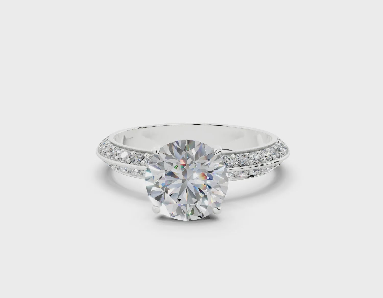 18K Gold Half Pavé Six Prong Knife Edge Diamond Engagement Ring 1.5 Carat