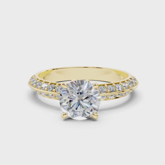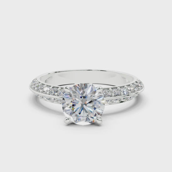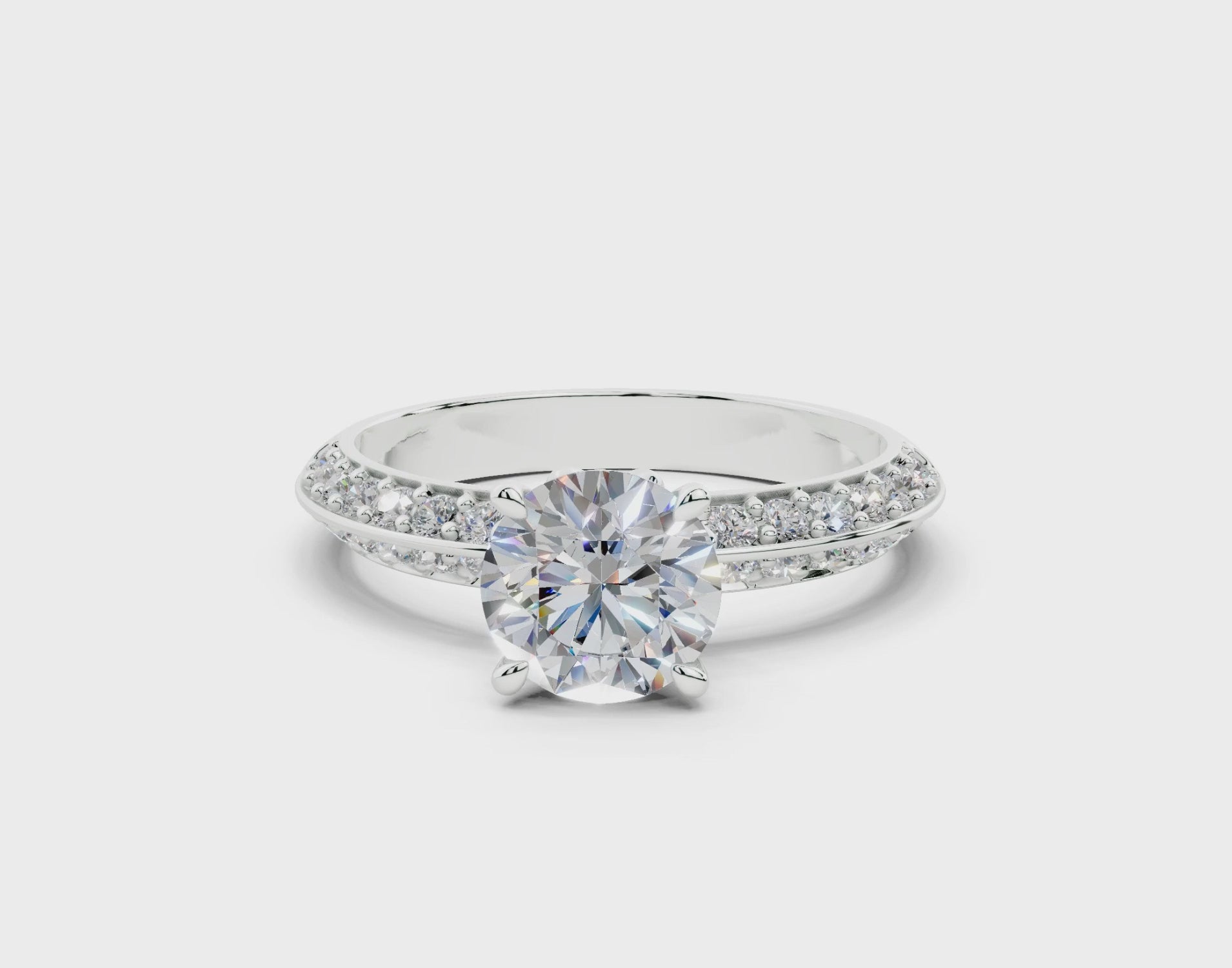 18K Gold Half Pavé Six Prong Knife Edge Diamond Engagement Ring 1 Carat