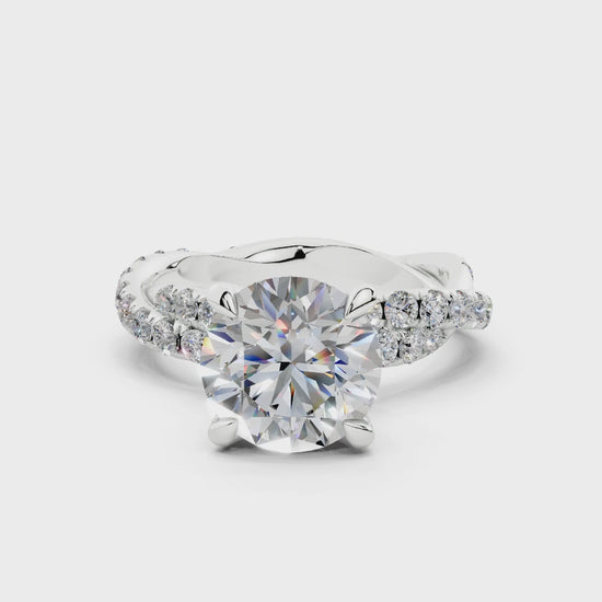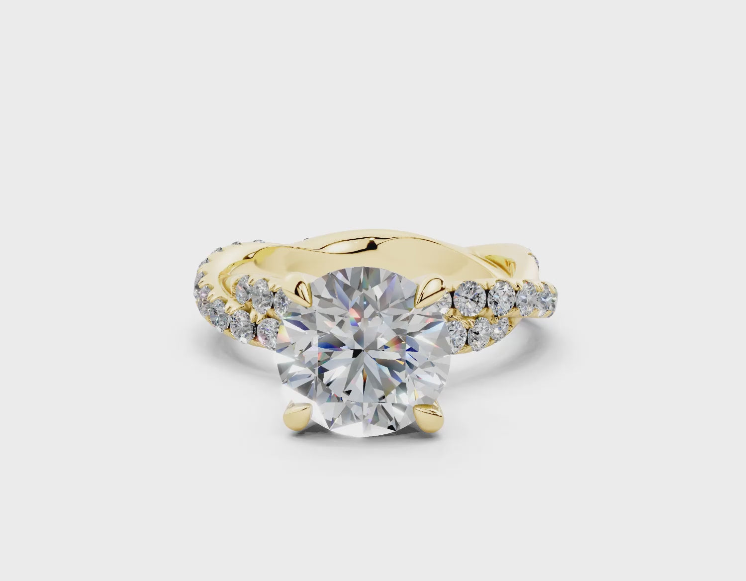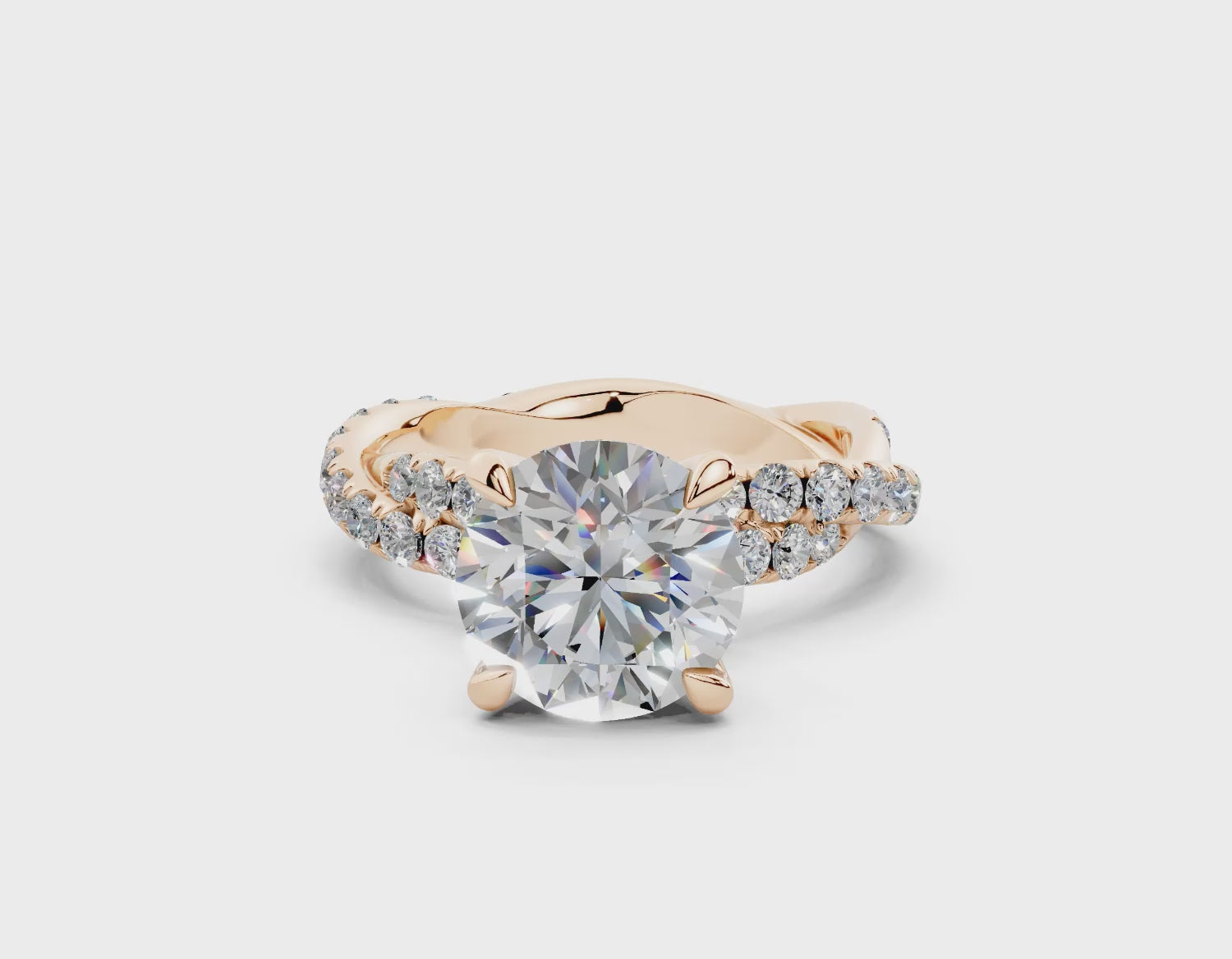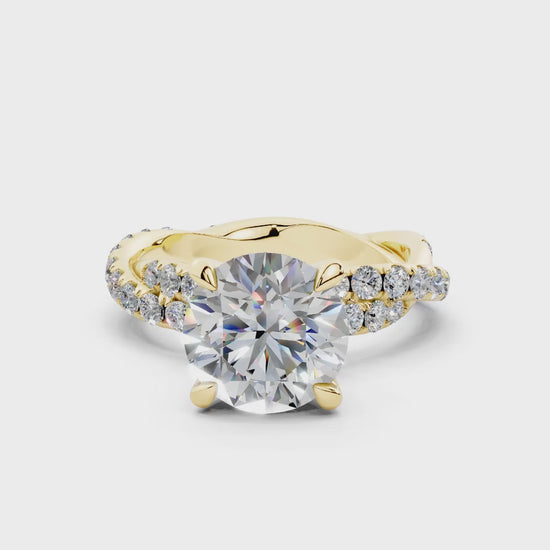 18K Gold Half Pavé Twisted Diamond Engagement Ring 2.5 Carat