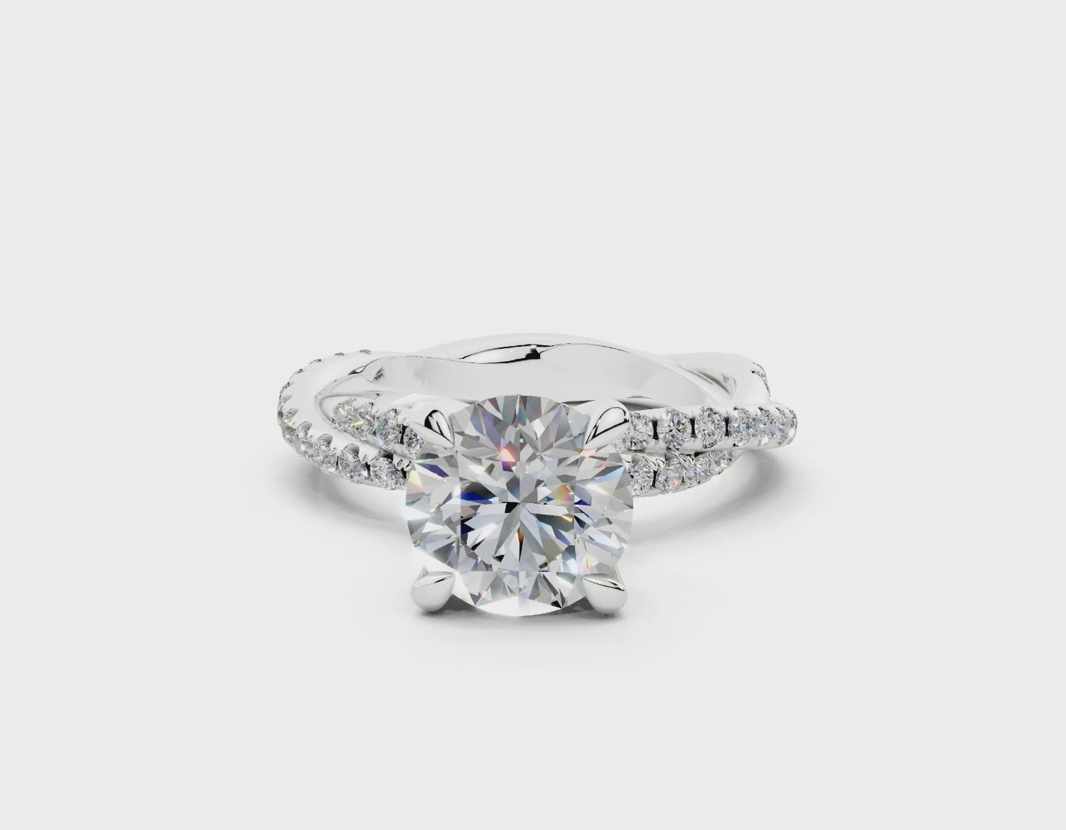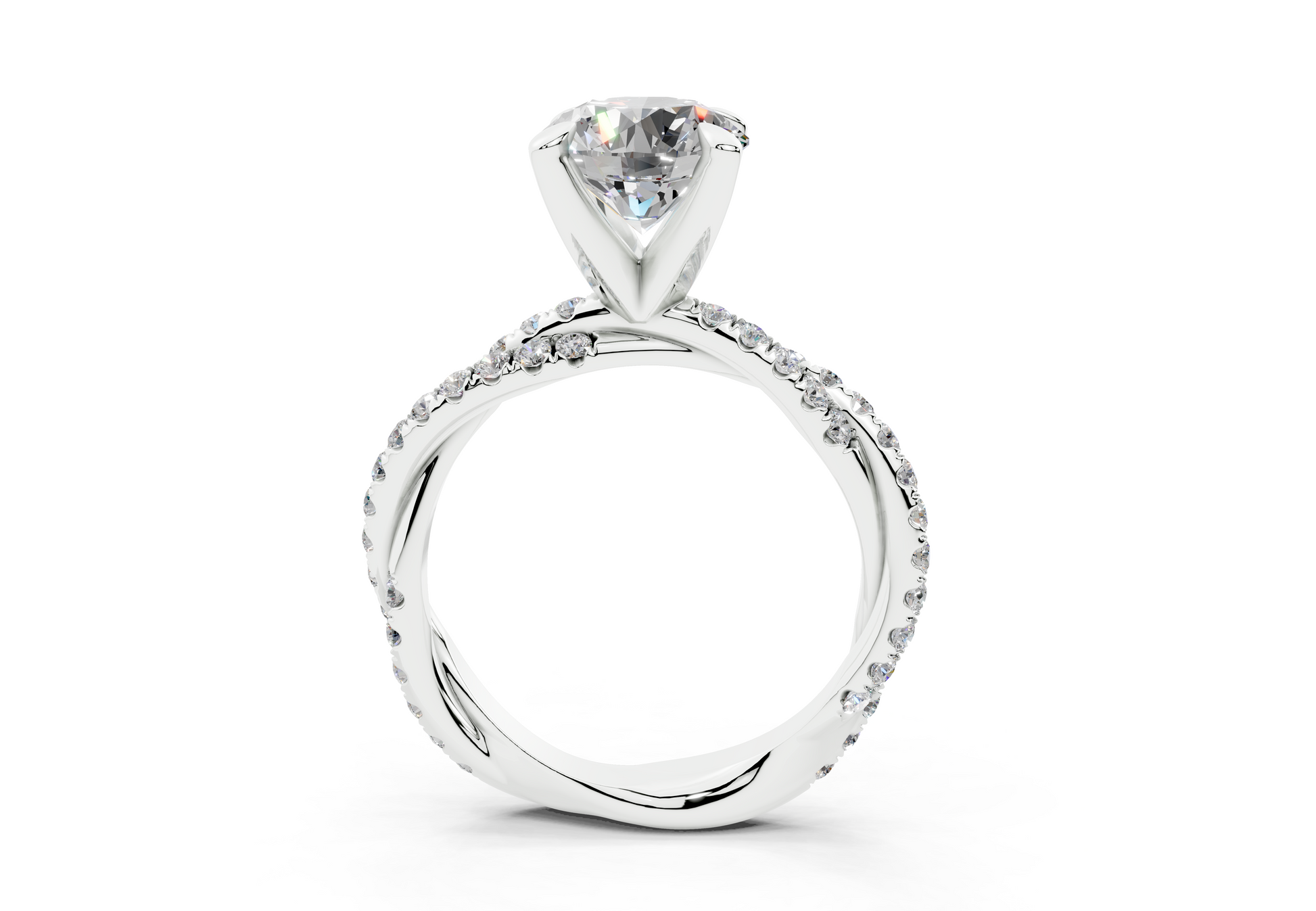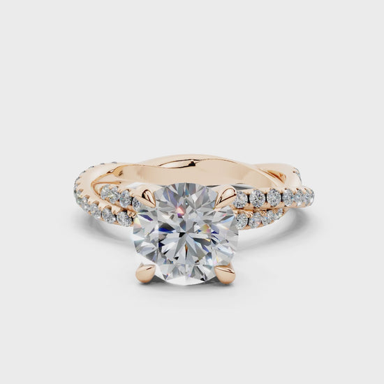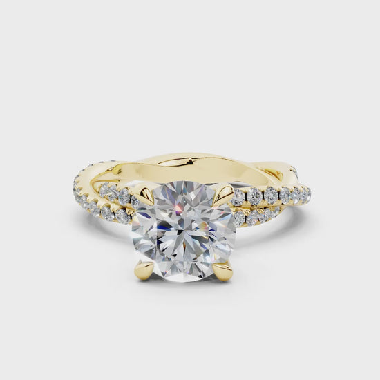 18K Gold Half Pavé Twisted Diamond Engagement Ring 2 Carat