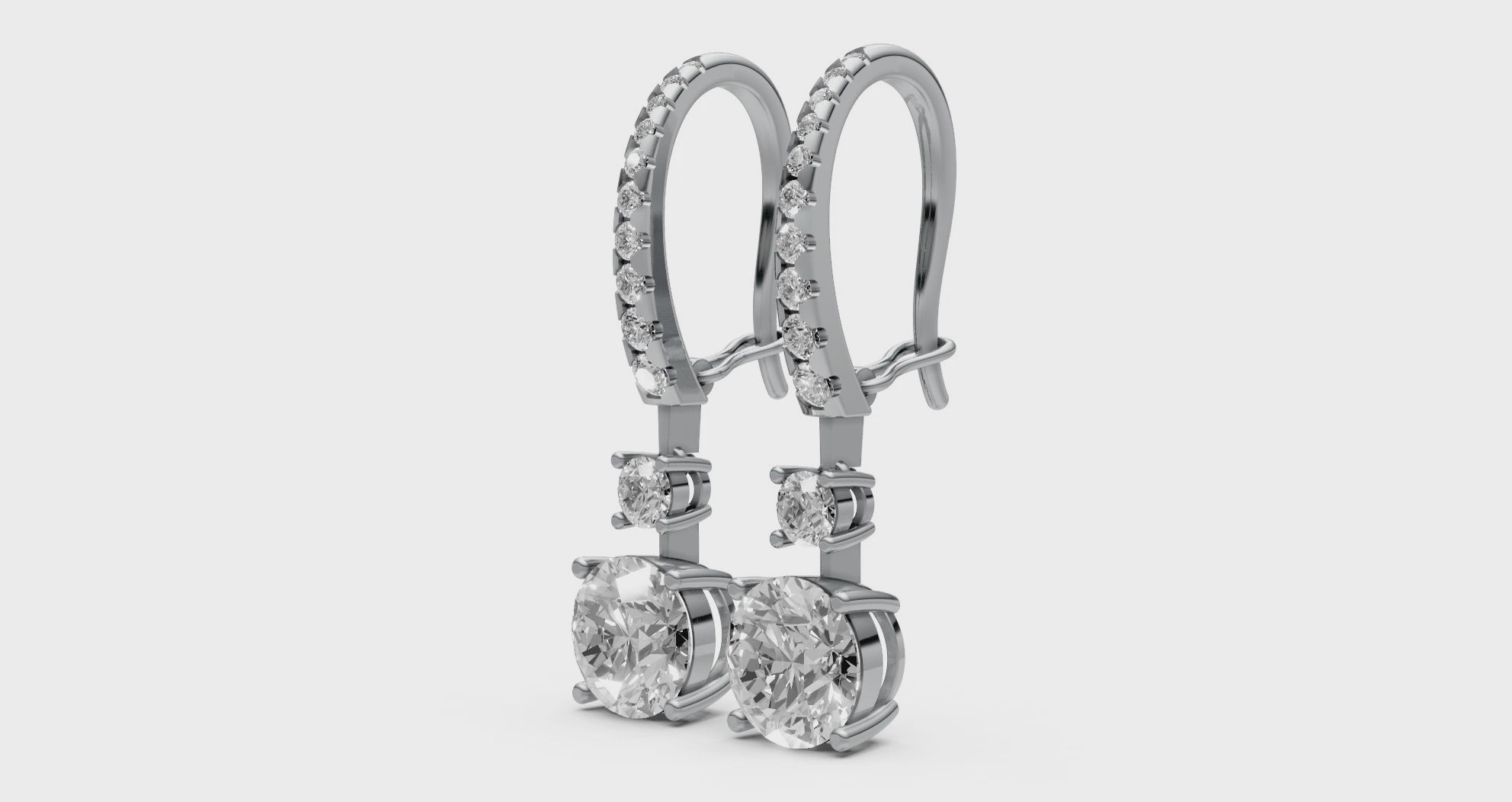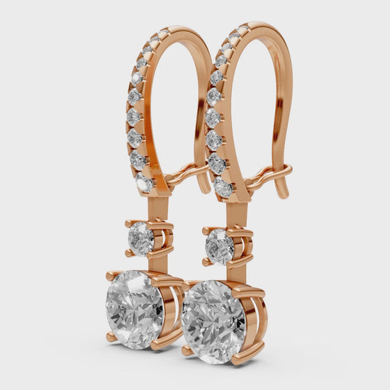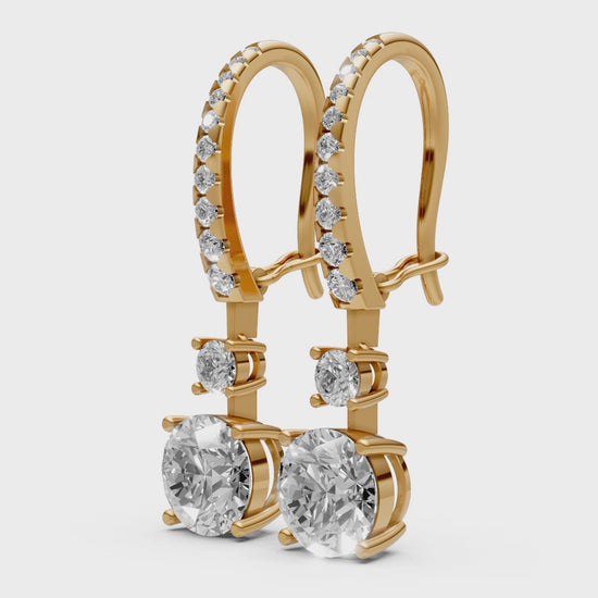 Redefine your signature look with these breathtaking 18K gold earrings, where architectural precision meets pure opulence. Each piece features a meticulously graduated trail of brilliant lab-grown diamonds, cascading toward two magnificent 1.5ct round solitaires. This design offers a bold yet minimalist silhouette, making it the ultimate statement for bridal elegance or high-fashion western styles.