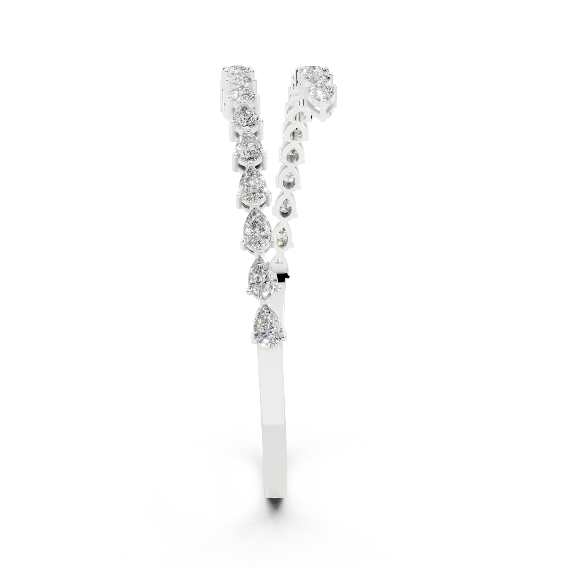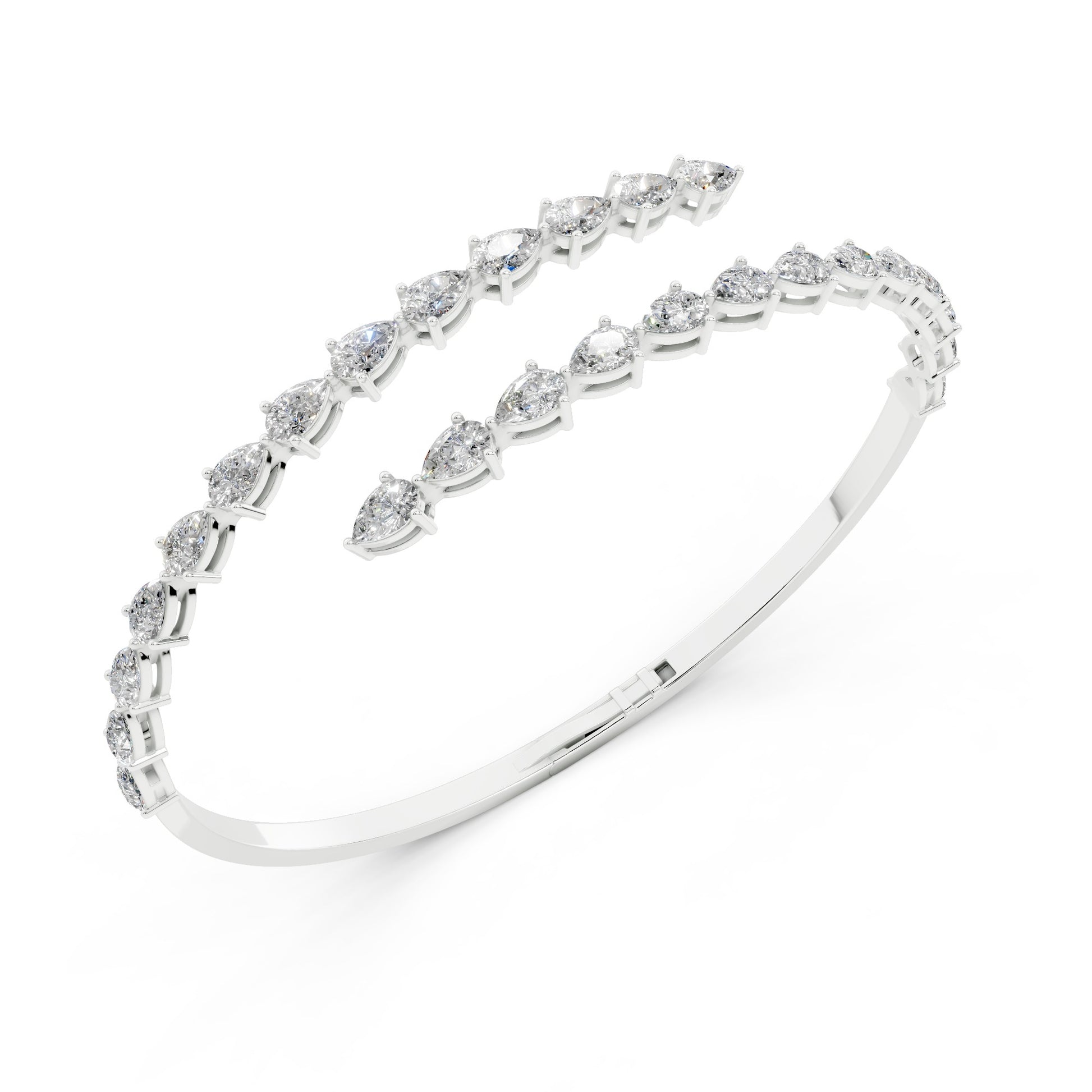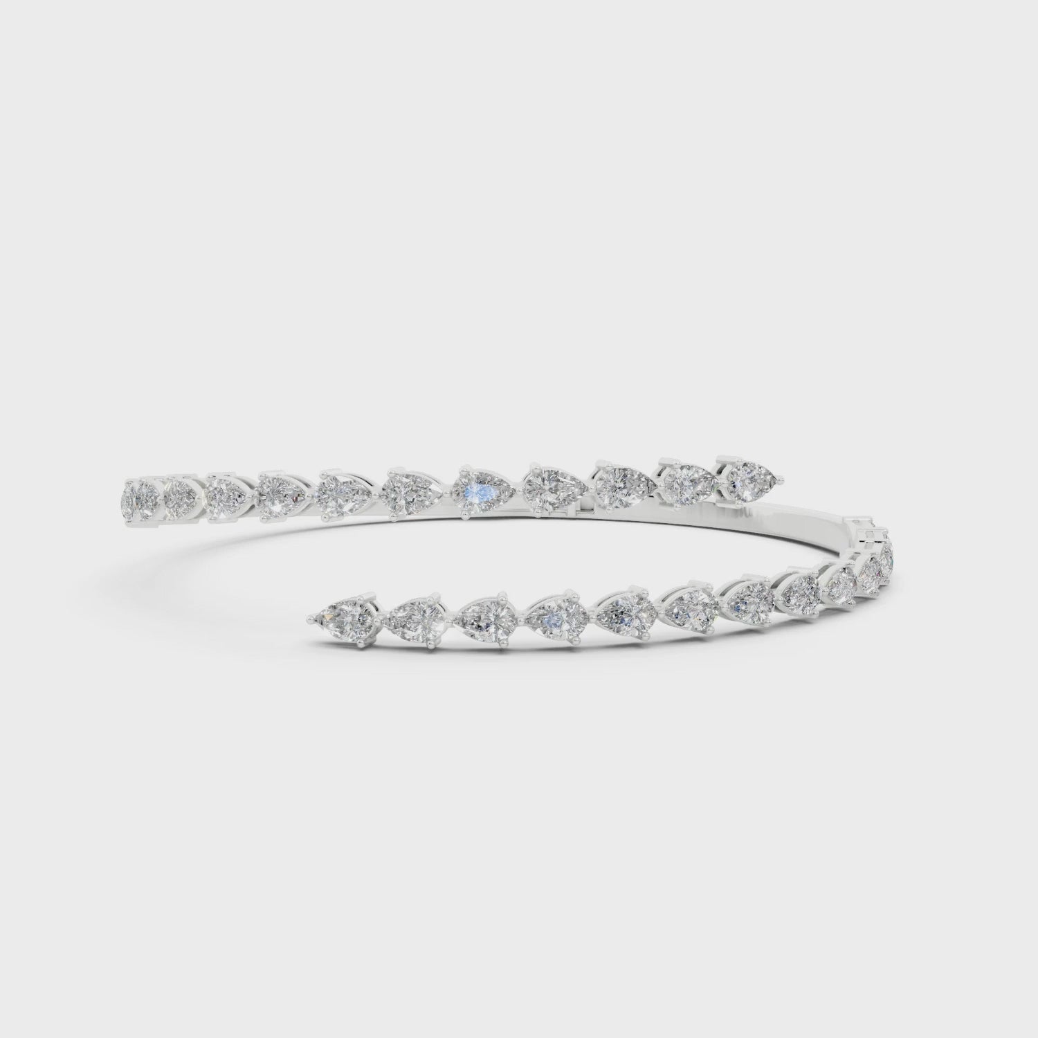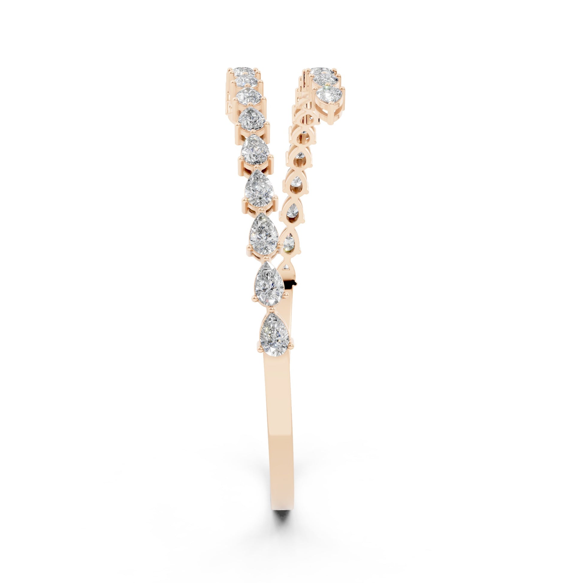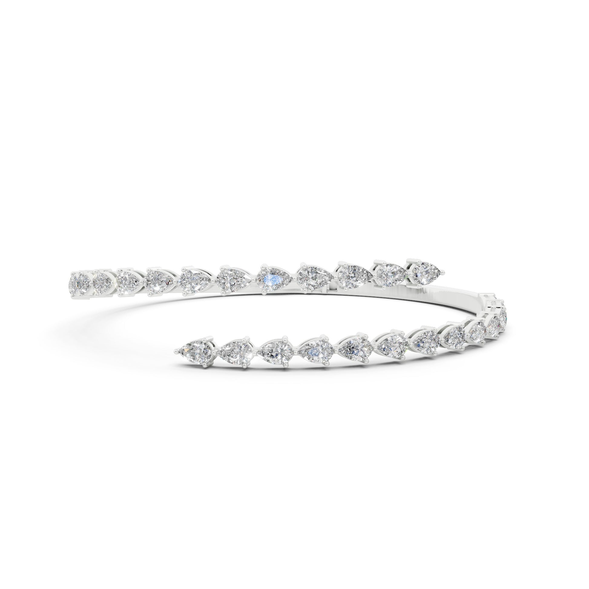 The Bold Pear Cuff Bangle offers 6 carats of lab-grown pear-shaped diamonds in a dramatic open cuff. A statement piece in 18k gold.