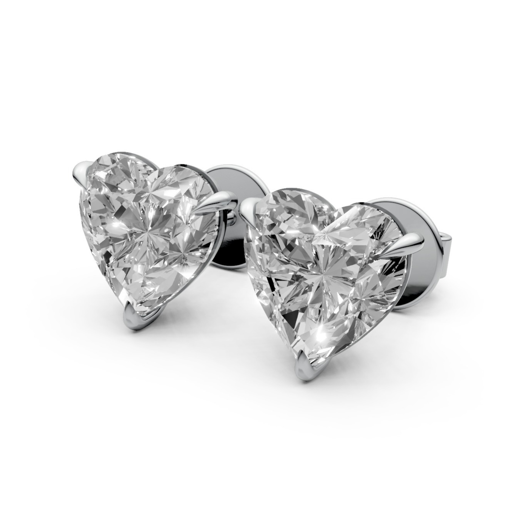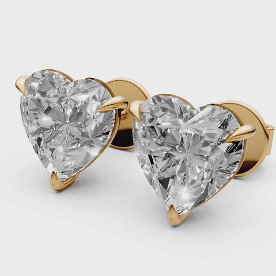 Heart-Shaped Stud Earrings with 2 CT Diamonds in 18K Gold