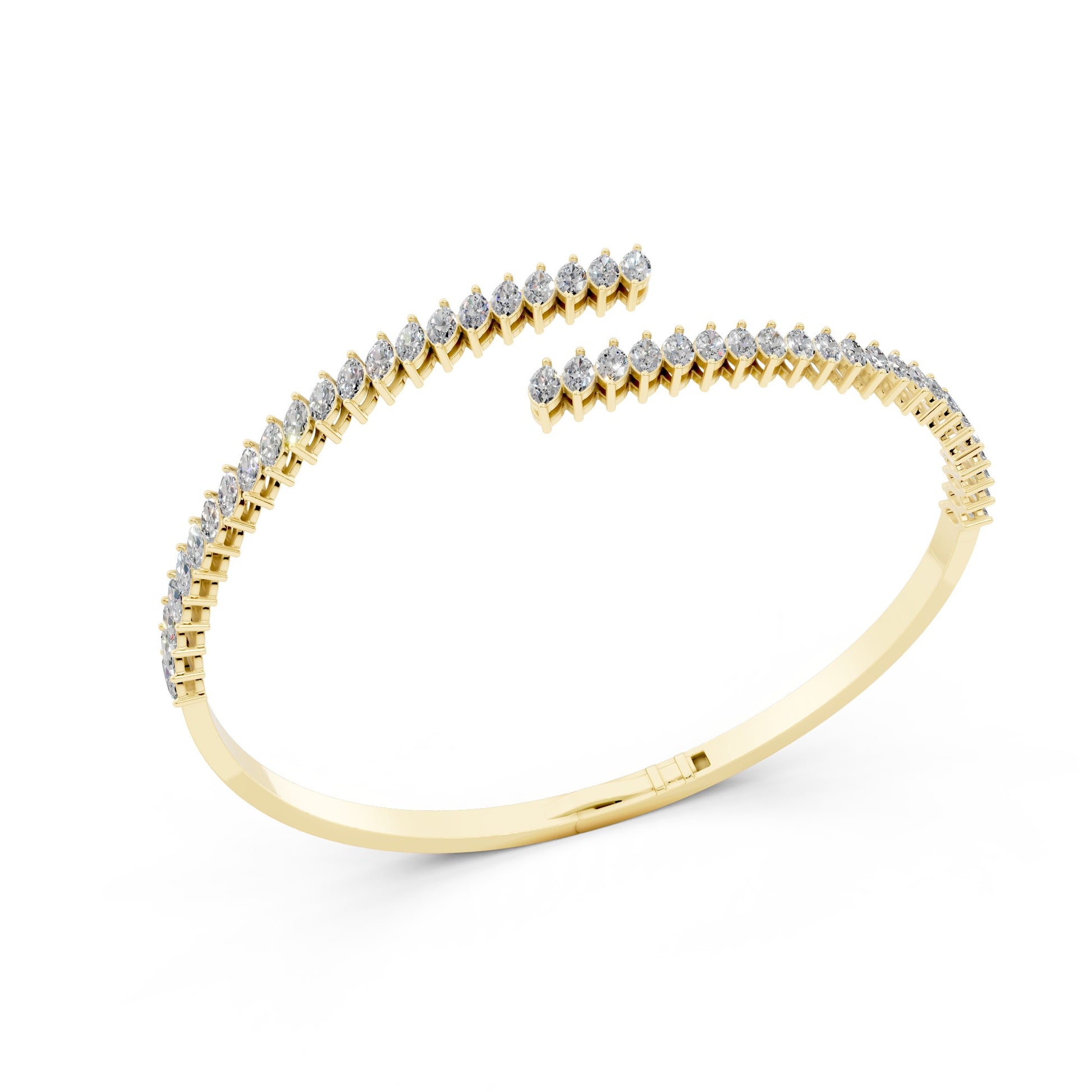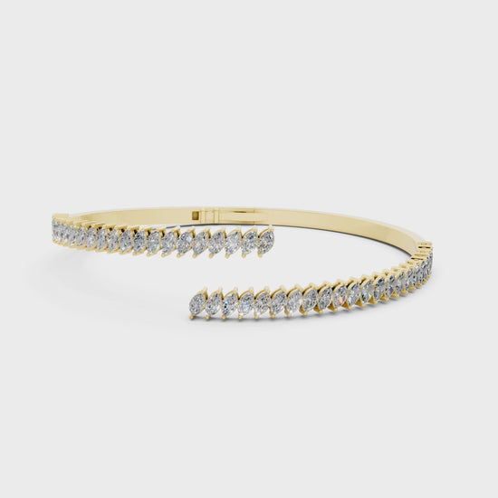 The Petite Marquise Cuff Bangle features 4.4 carats of lab-grown marquise-cut diamonds. A sleek open design in 18k gold for everyday brilliance.