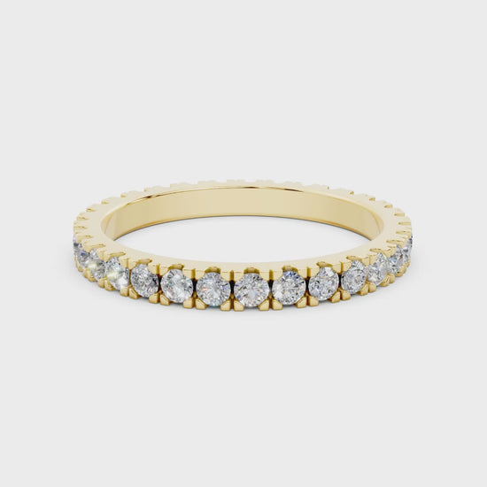 The Slim Eternity Band features a delicate row of lab-grown diamonds, offering refined sparkle with a minimalist feel. Perfect for stacking with your engagement ring, creating a layered look, or wearing solo for effortless elegance.